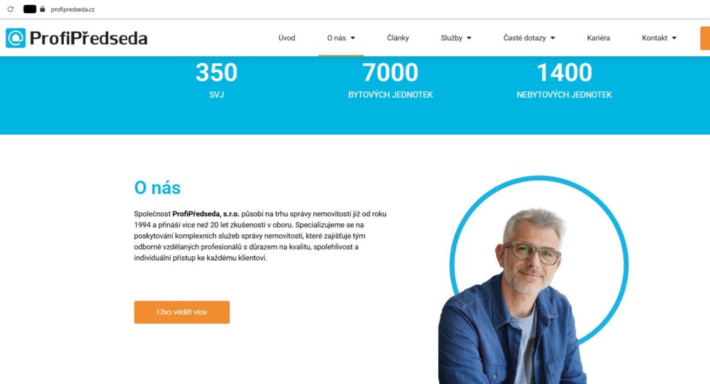 Společnost ProfiPředseda, s.r.o., která nabízí SVJ službu výkon funkce předsedy SVJ, tzv. profesionální předseda, má na svém webu tuto informaci: